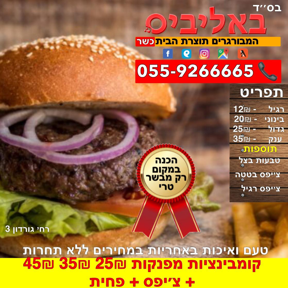 באליביס מציעה מגוון רחב של המבורגרים, כל אחד מהם עשוי ממיטב החומרים. הלקוחות שמבקרים במקום נרגשים לגלות את הייחודיות של כל מנה, והעיסוק בפרטים הקטנים יוצר חוויה שלא תשכחו במהרה. השירות האדיב והחם מוסיף עודפי חמימות ומסביר פנים, וכך כל ביקור הופך למסיבת טעמים.